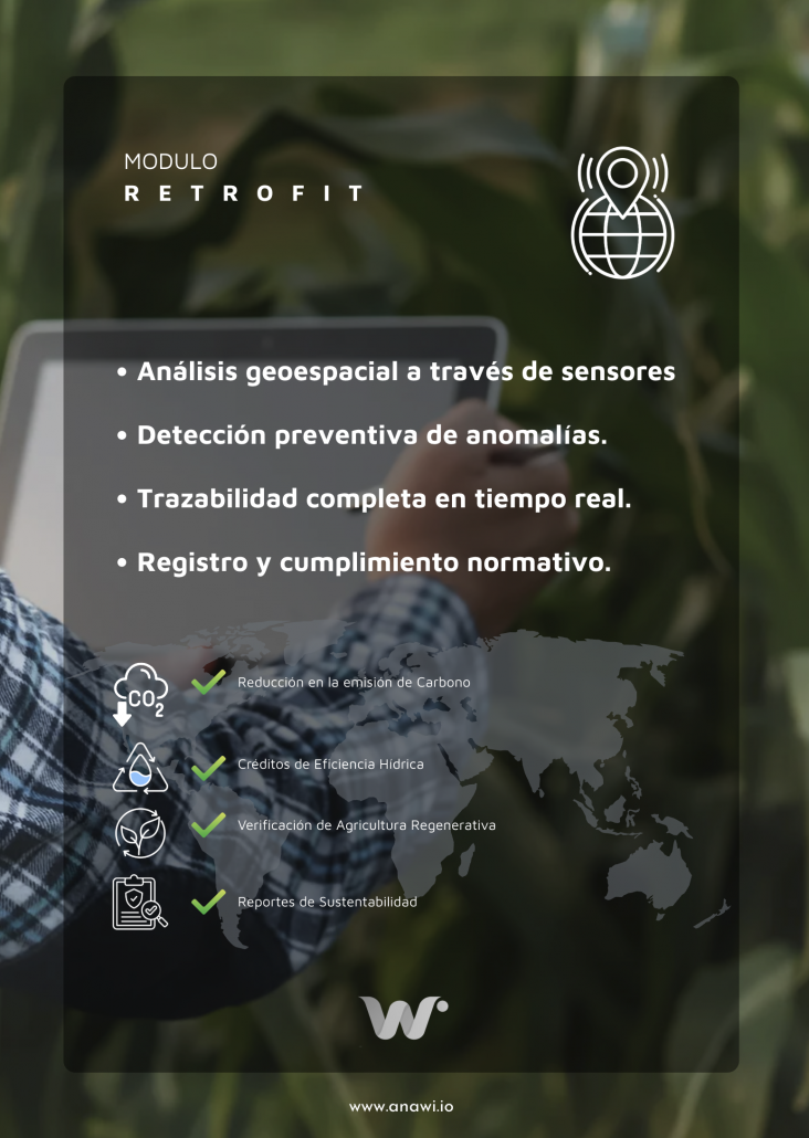 La plataforma detecta anomalías (plagas, estrés hídrico) y automáticamente sugiere la acción correctiva que cumplirá con la legislación vigente, orquestando la ejecución mediante el retrofit de tractores o drones.